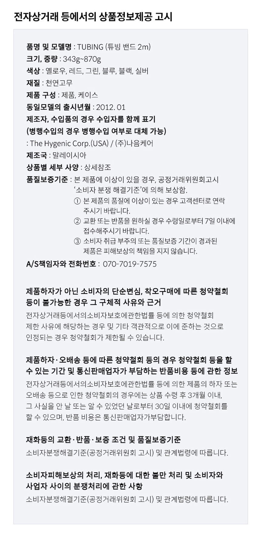 HOME > 헬스/휘트니스/재활 > 근력/스트레칭밴드 > 세라밴드 튜빙밴드 옐로우