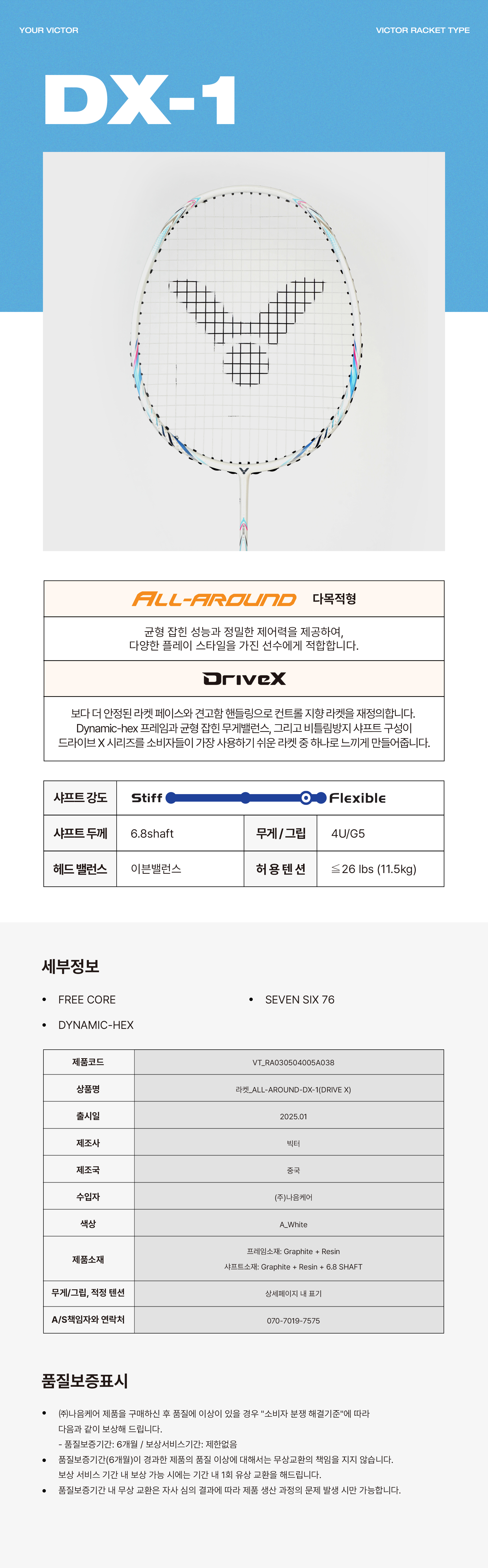 HOME > 빅터 > 라켓 > DRIVE X (드라이브 X) > 빅터 드라이브X 1 DX-1 4U 올라운드 다목적형 배드민턴 라켓