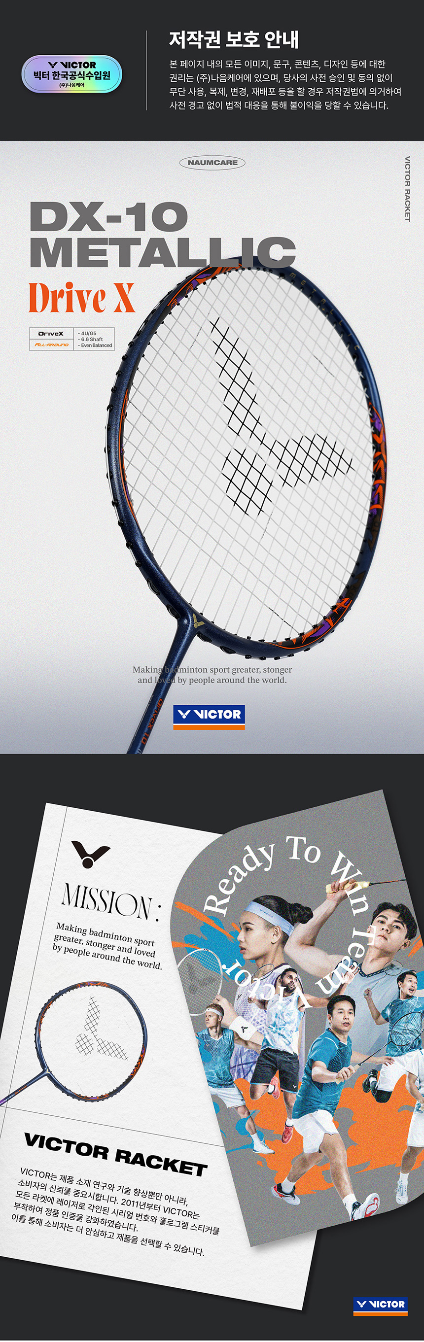 - HOME > 빅터 > 라켓 > DRIVE X (드라이브 X) > 빅터 드라이브X10 메탈릭 4U 올라운드 배드민턴라켓
