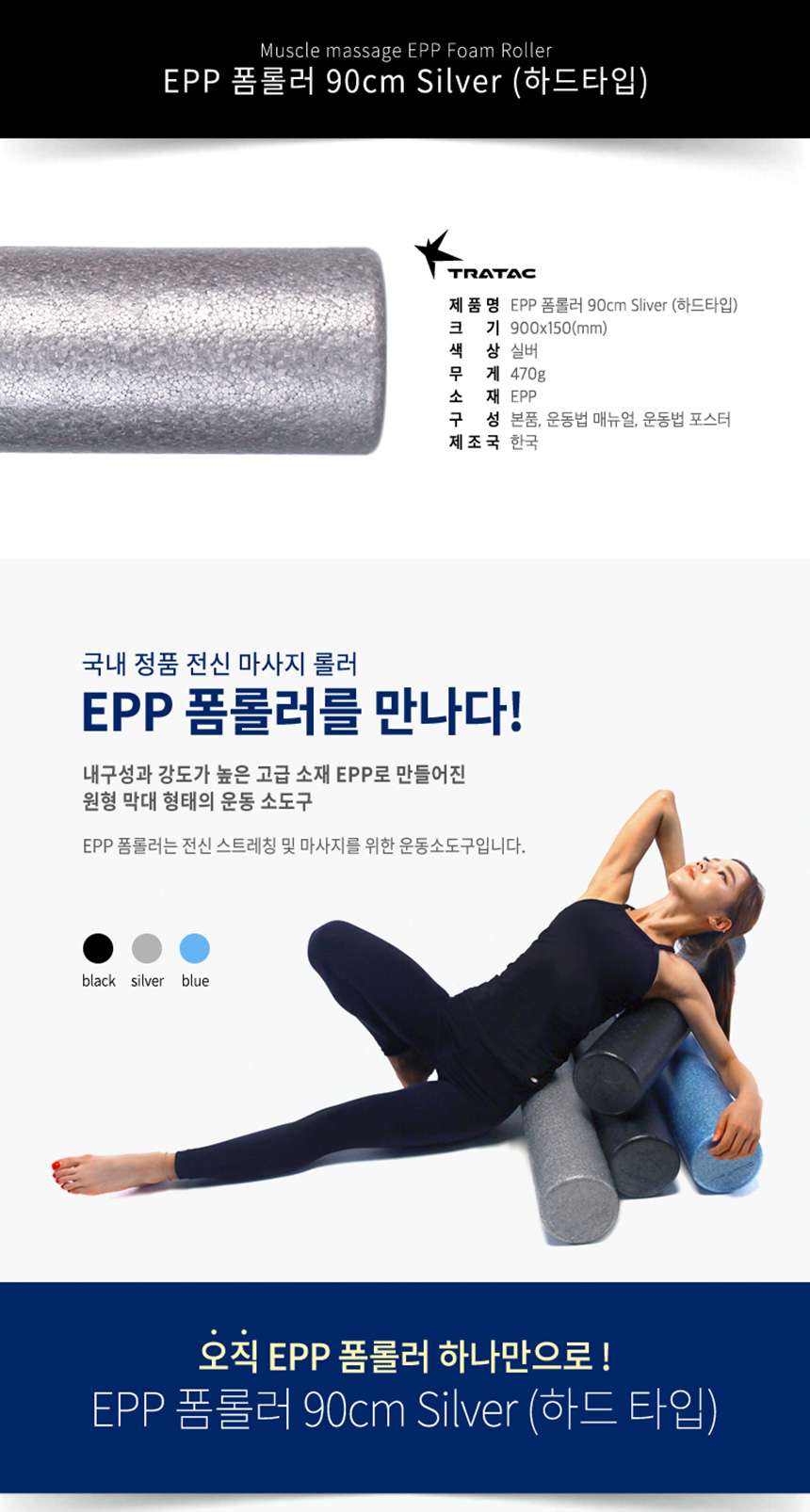 트라택 EPP폼롤러 원형 91cm 하드 휘트니스 요가