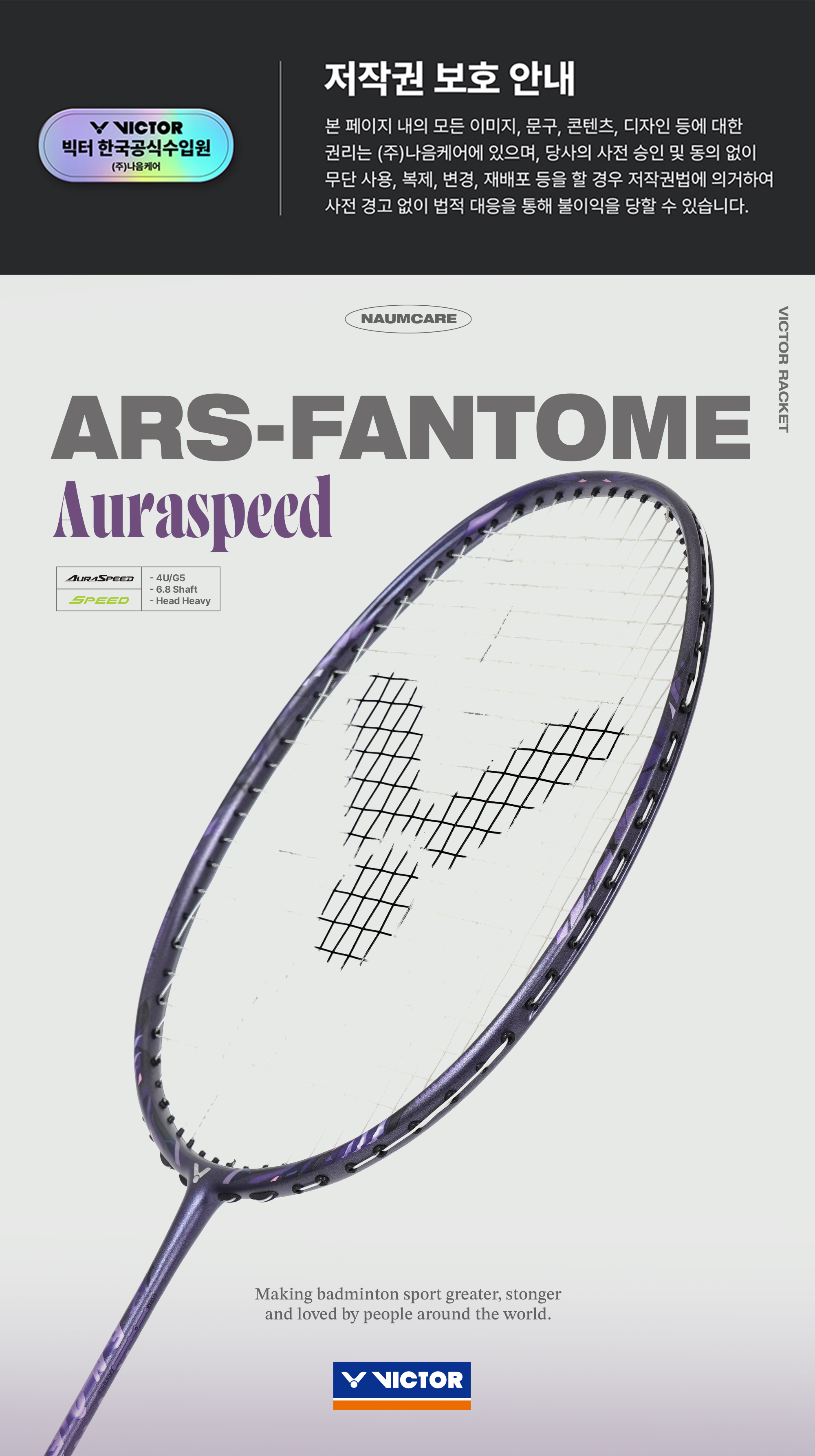 - HOME > 빅터 > 라켓 > AURASPEED (아우라스피드) > 빅터 아우라스피드 팬텀 스피드형 배드민턴 라켓