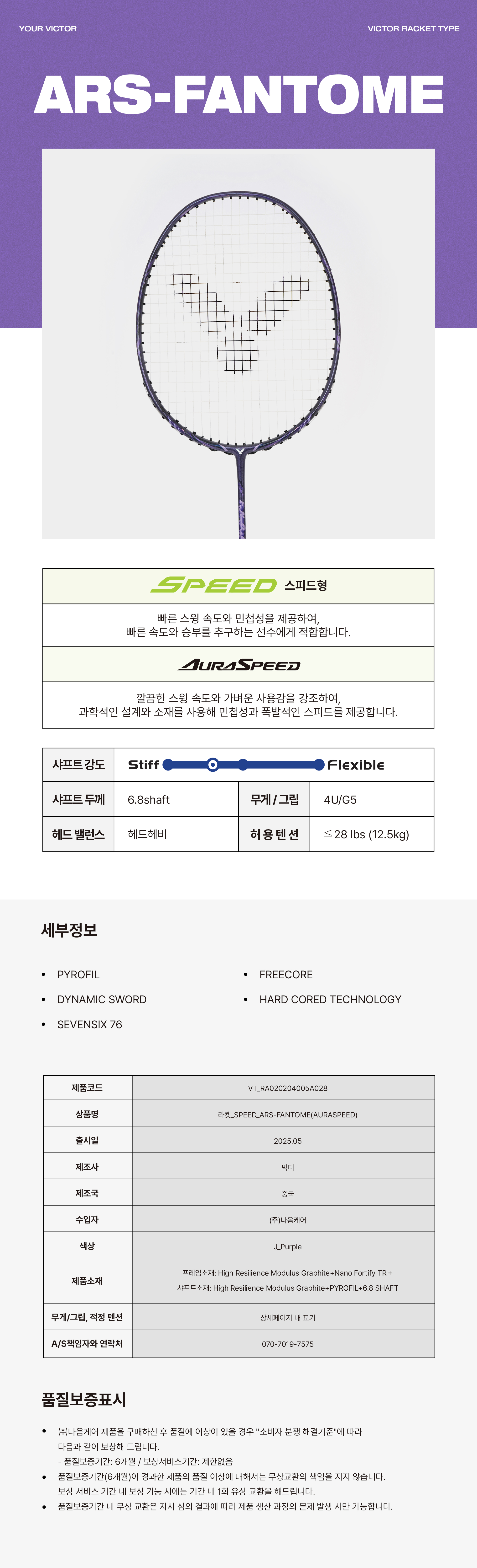 | 품명 및 모델명 | 빅터 아우라스피드 FANTOME |