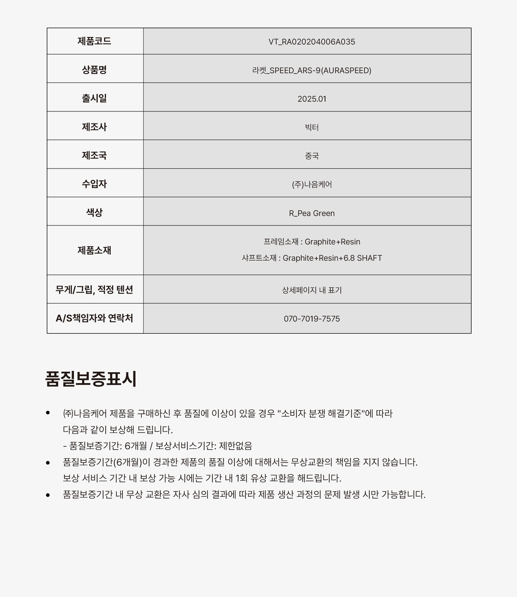 - - 상품의 불량에 의한 반품, 교환, A/S, 환불, 품질보증 및 피해보상 등에 관한 사항은 소비자분쟁해결기준(공정거래위원회 고시)에 따라 받으실 수 있습 니다.