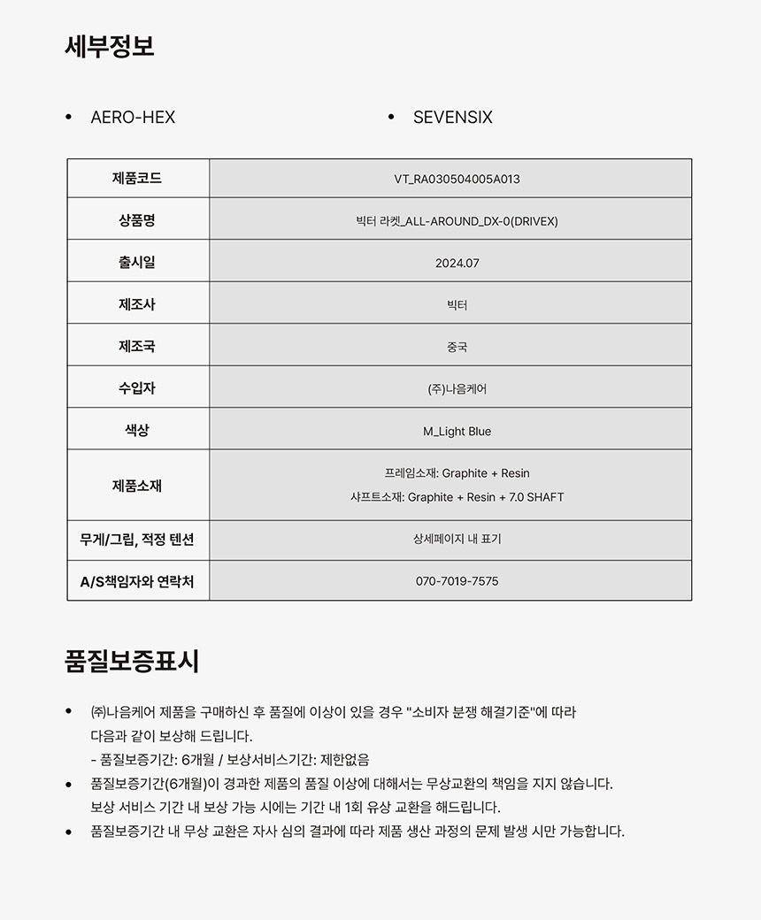• - 교환/반품 안내: 고객변심 및 주문착오에 의한 교환/반품은 제품 수령일로부터 7일 이내 가능합니다.