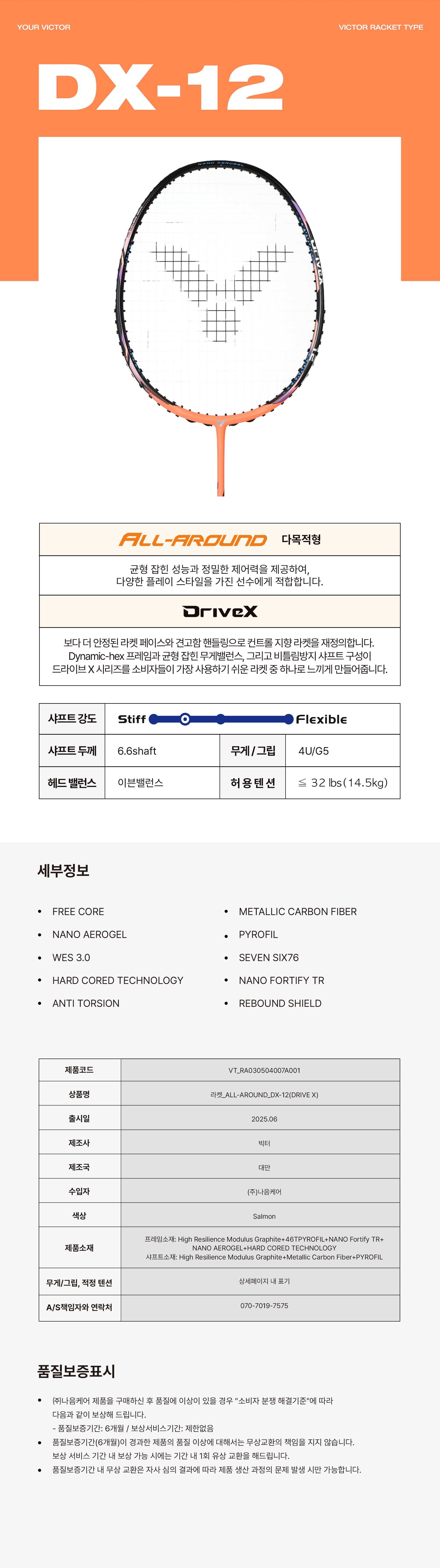 HOME > 빅터 > 라켓 > DRIVE X (드라이브 X) > 빅터 드라이브X 12 K블랙 4U 배드민턴 라켓