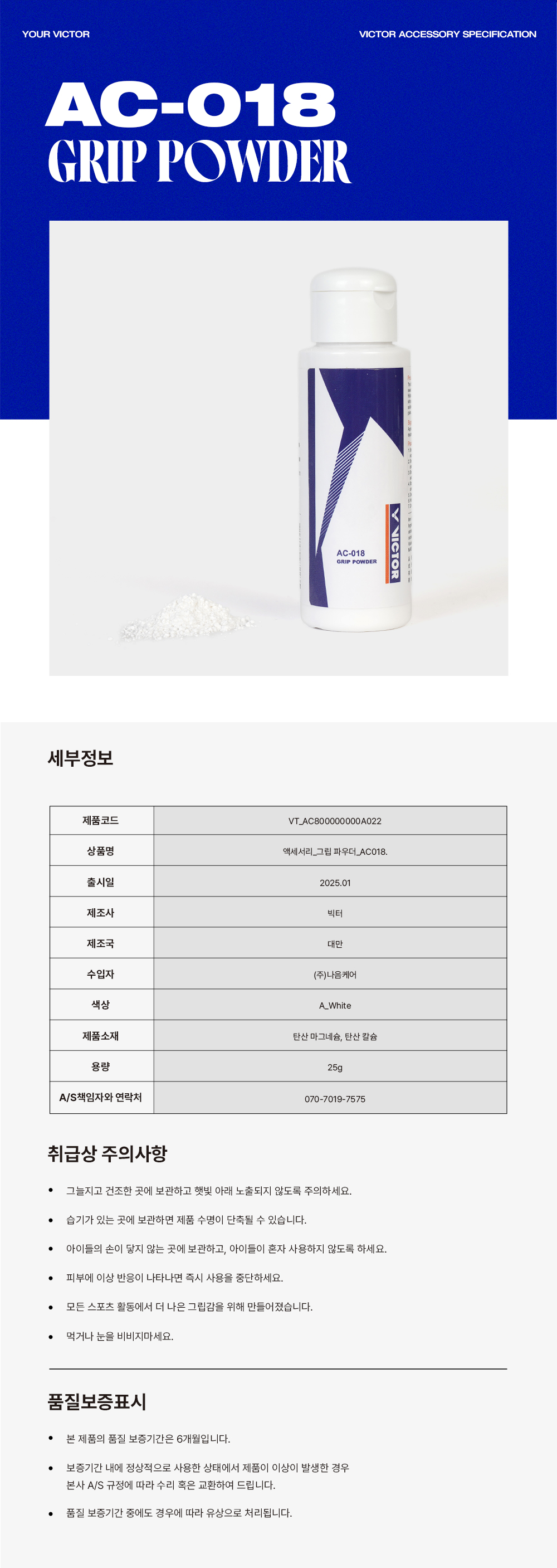 HOME > 빅터 > 그립 > OVER GRIP > 빅터 선수용 미끄럼방지 그립파우더 AC-018 탄마가루