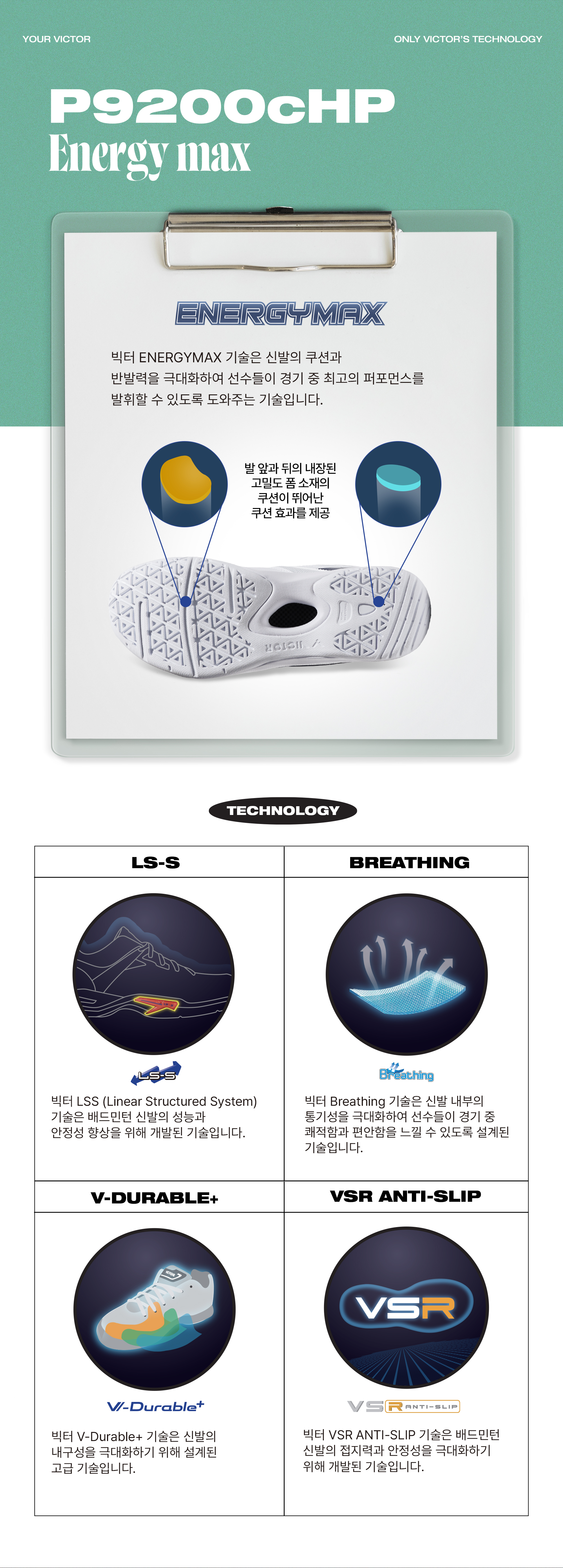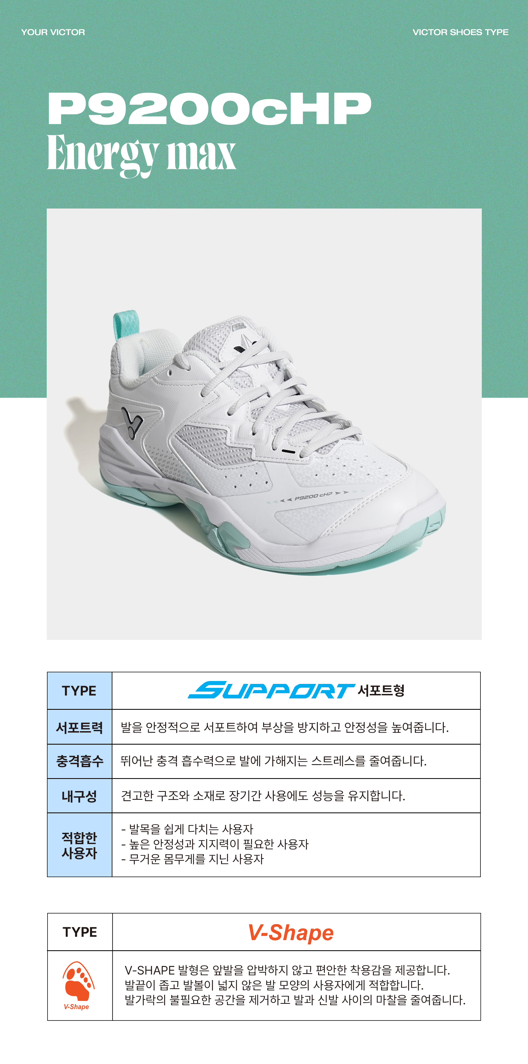 HOME > 빅터 > 신발 > SPEED > 빅터 배드민턴화 SUPPORT P9200cHP(V-Shape)-AG_BrightWhite