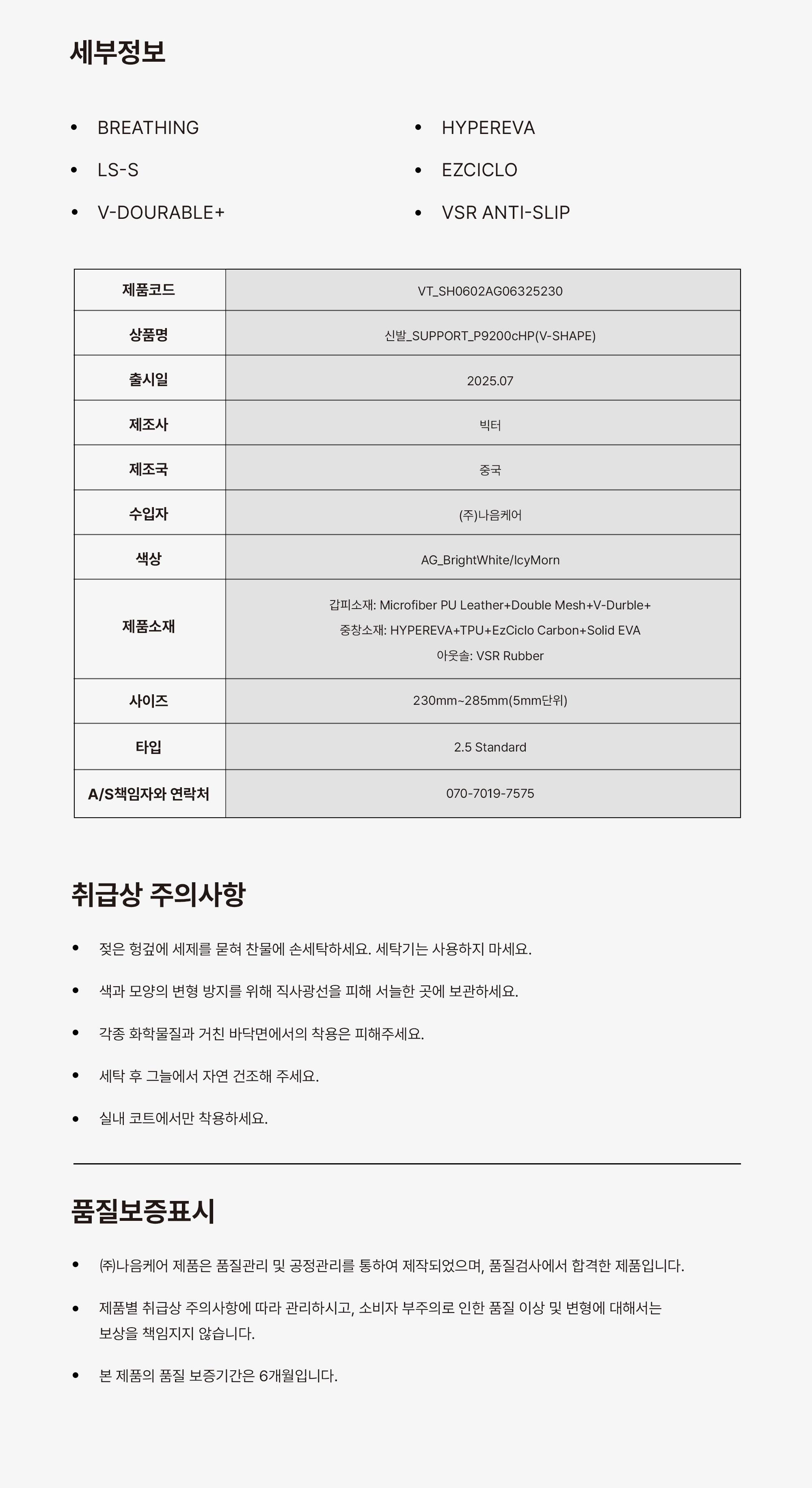 품질보증기준 상세페이지참조