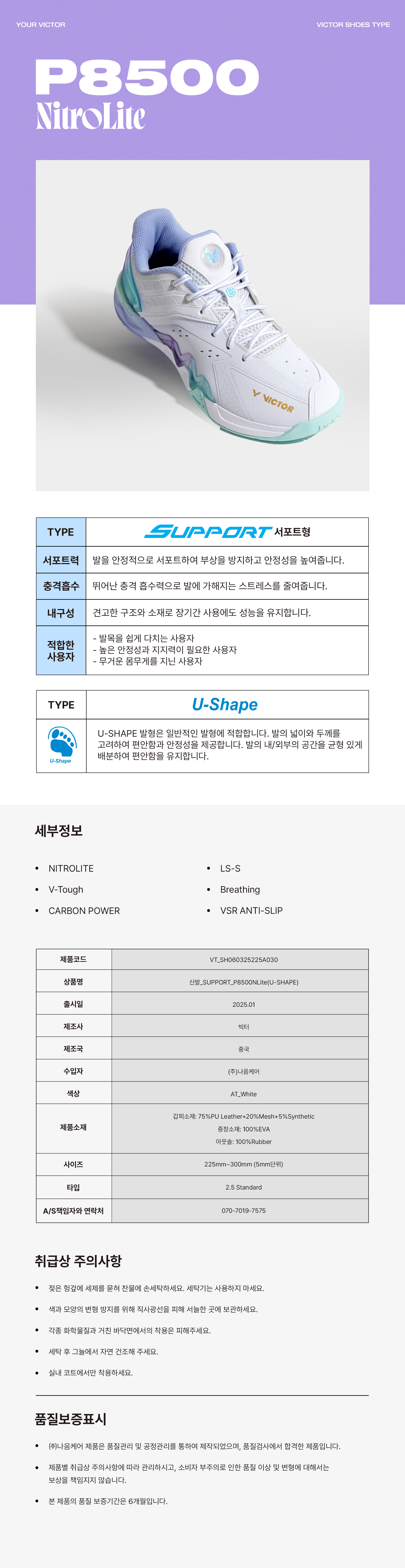 빅터 배드민턴화 SUPPORT P8500NLite AT_White U-Shape